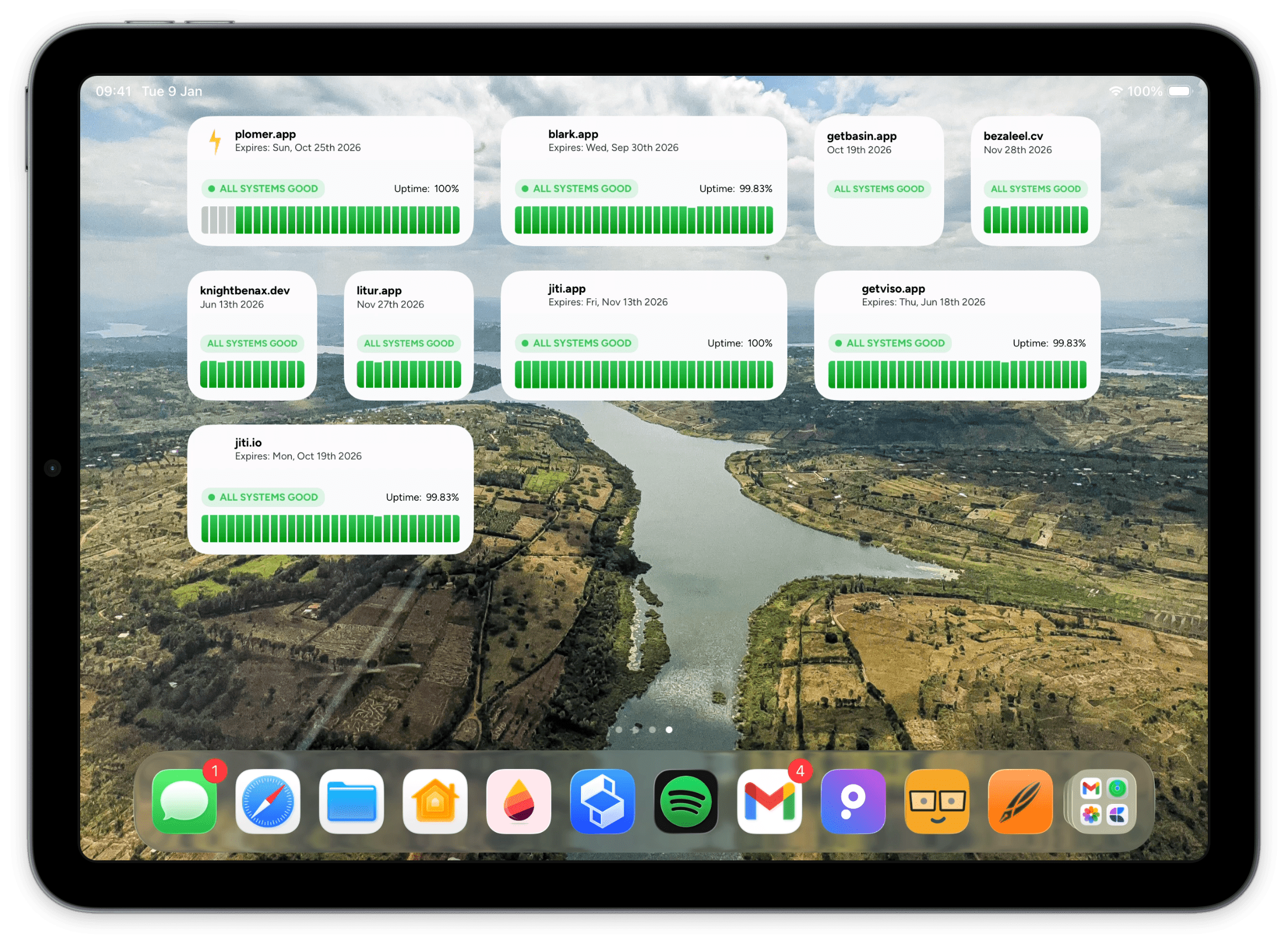 of uptime, DNS status,